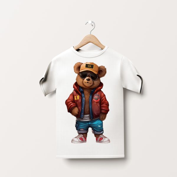 Bela Muška majica - Medvedic sa crvenom jaknom