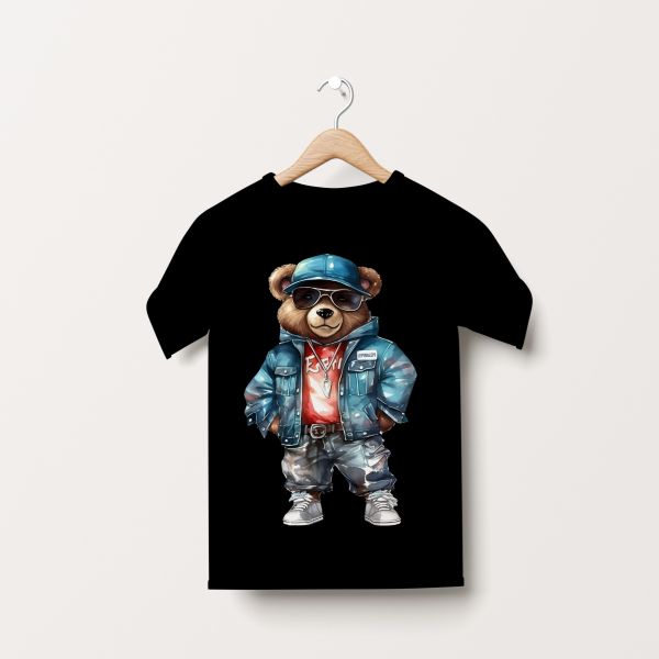 Crna Muška majica - Medvedic u teksas jakni