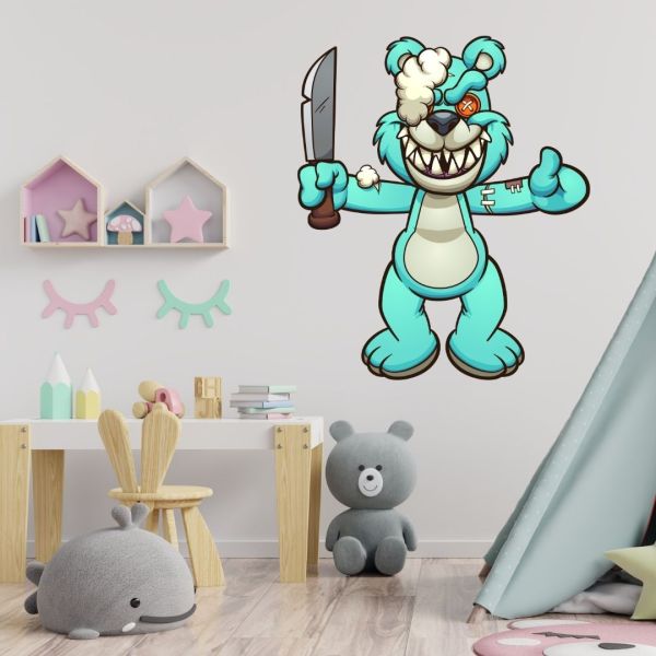 Ovaj "Zli Medvedić" će sigurno privući pažnju i postati intrigantan element dekoracije. Bez obzira da li ga koristite kao deo tematske dekoracije ili jednostavno kao nešto drugačije, ovaj stiker će dodati dozu originalnosti prostoru.