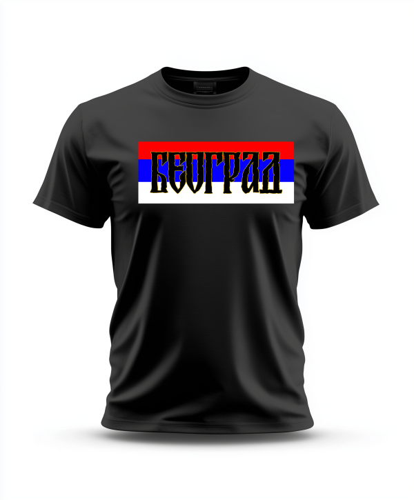 Pokažite ljubav prema svom gradu uz našu jedinstvenu majicu sa patriotističkim dizajnom! Na prednjem delu majice nalazi se ime vašeg omiljenog grada, inspirisano bojama zastave, koje izražava ponos i pripadnost.